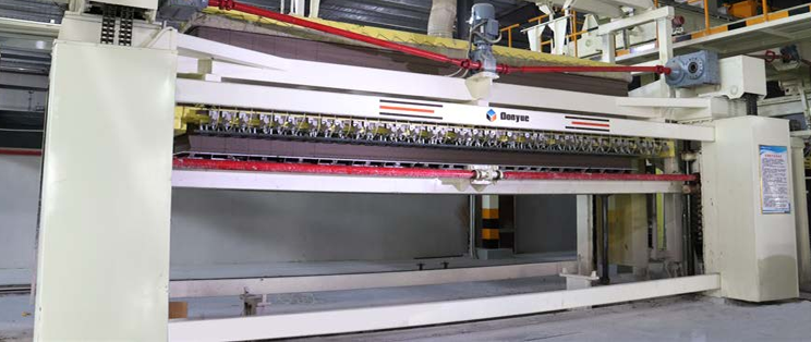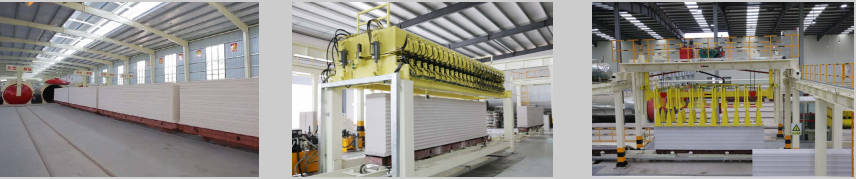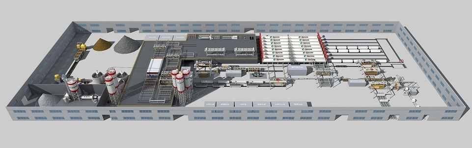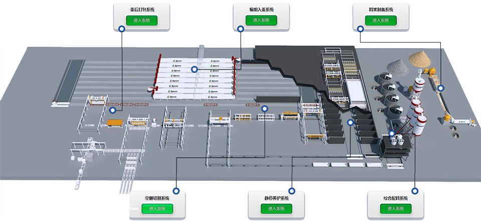 料漿、膠結料、石膏和鋁粉都分別通過(guò)相應自動(dòng)計量稱(chēng)計量,后在攪拌機內高速攪拌,澆注到模箱后進(jìn)行氣泡梳理。整個(gè)體系由 PLC 系統進(jìn)行自動(dòng)控制,保證工序的精確和高效。