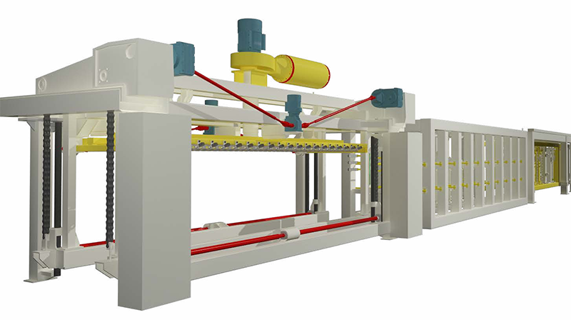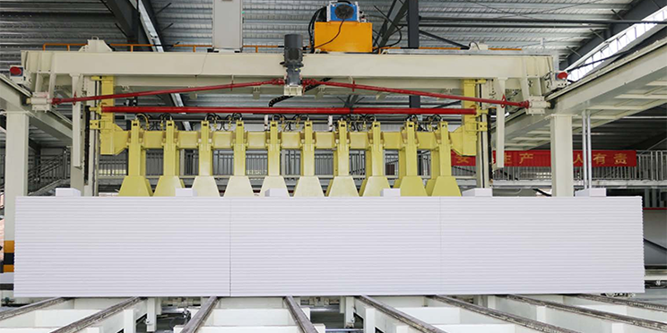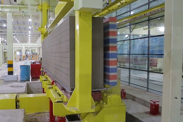 切割機組是加氣板材生產(chǎn)線(xiàn)的核心設備,用于切割不同尺寸的坯體,滿(mǎn)足超精確砌塊和板材的切割精度要求,生產(chǎn)板材時(shí)配合板材進(jìn)給刮刀,調節側面切割機的刮刀行程,可以滿(mǎn)足不同尺寸制品的混合切割。