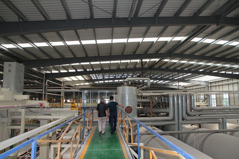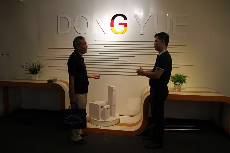 營(yíng)銷(xiāo)總經(jīng)理鄧奎與許世平副會(huì )長(cháng)參觀(guān)東岳氣混凝土板材生產(chǎn)線(xiàn)